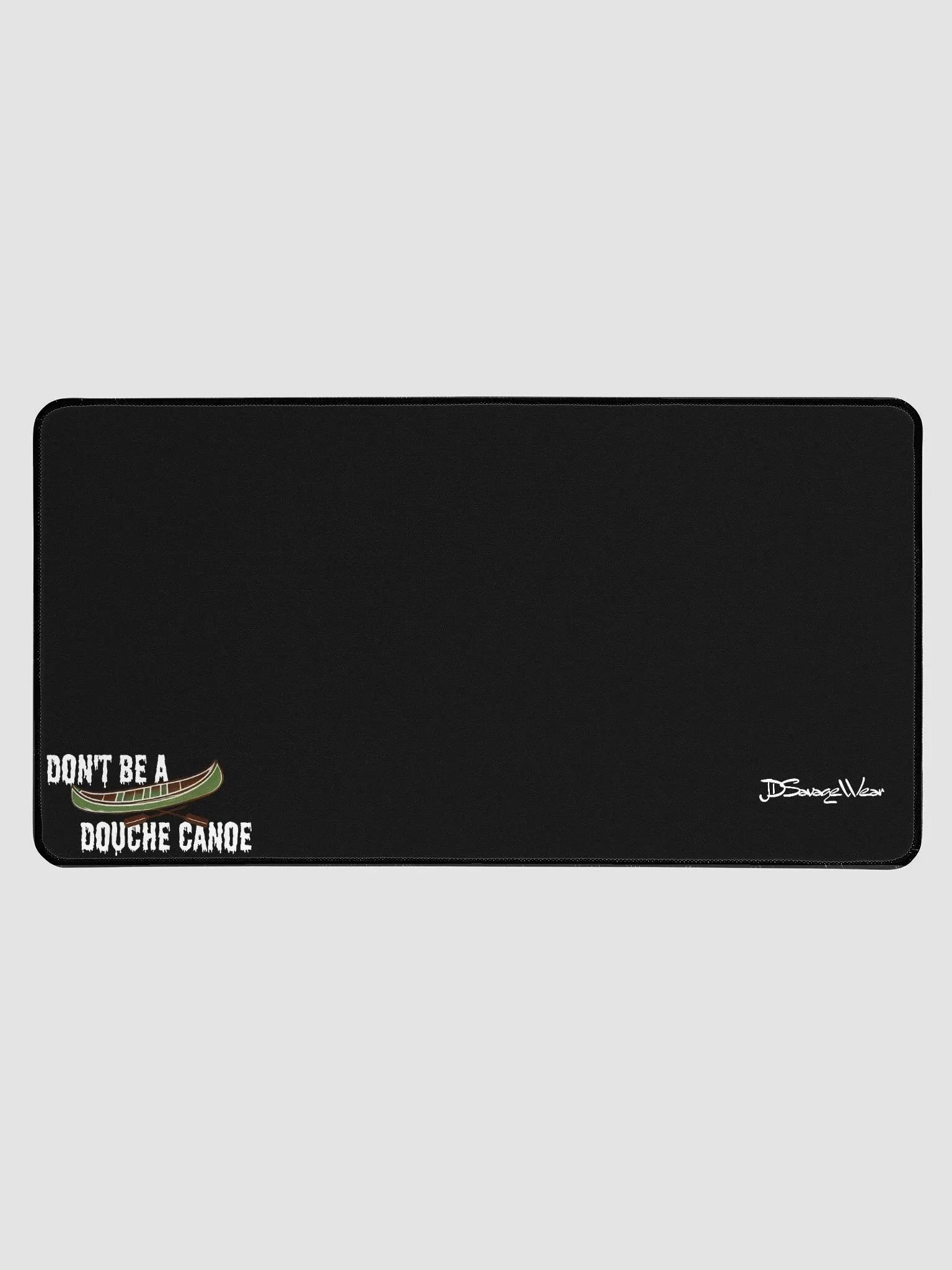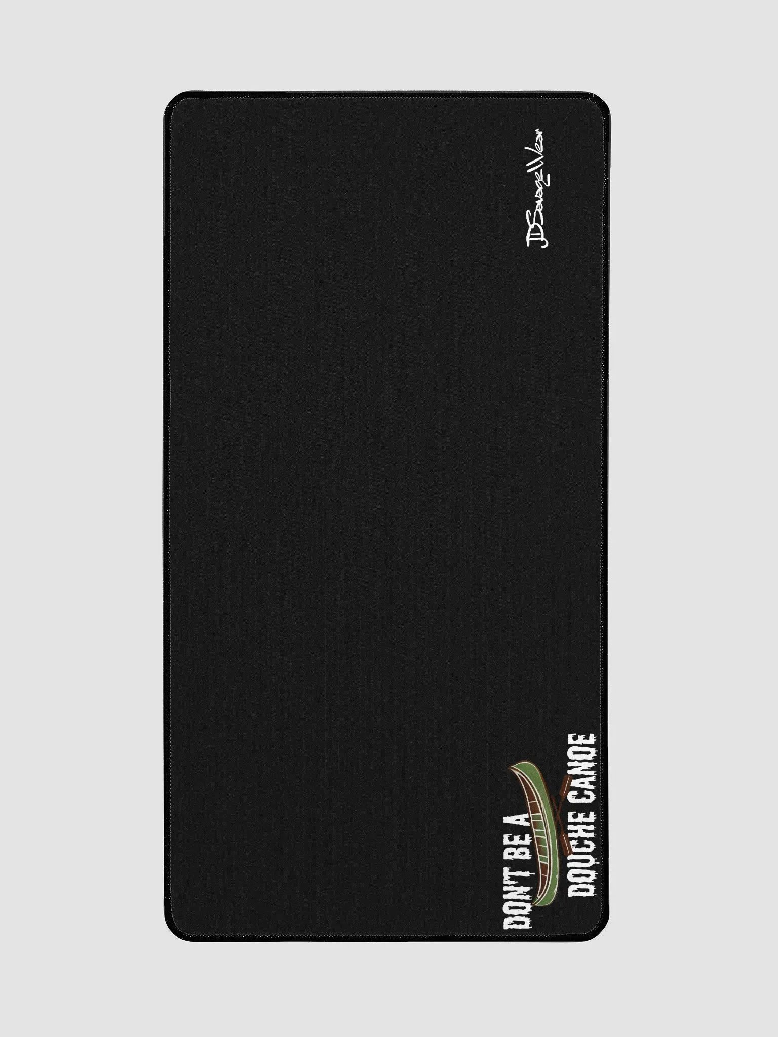 Make a statement while you work with our "Don't Be a Douche Canoe" Desk Mat—crafted for those who navigate life with confidence and a touch of humor. Measuring 15.5" x 31.5", this premium neoprene mat features a stunning dye sublimation print of a green canoe with crossed paddles, blending function with bold personality.
